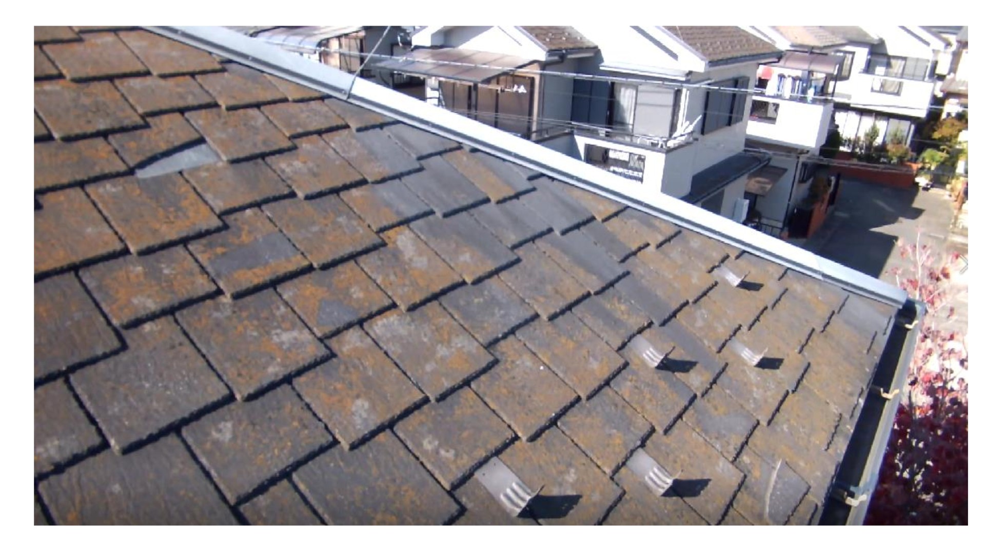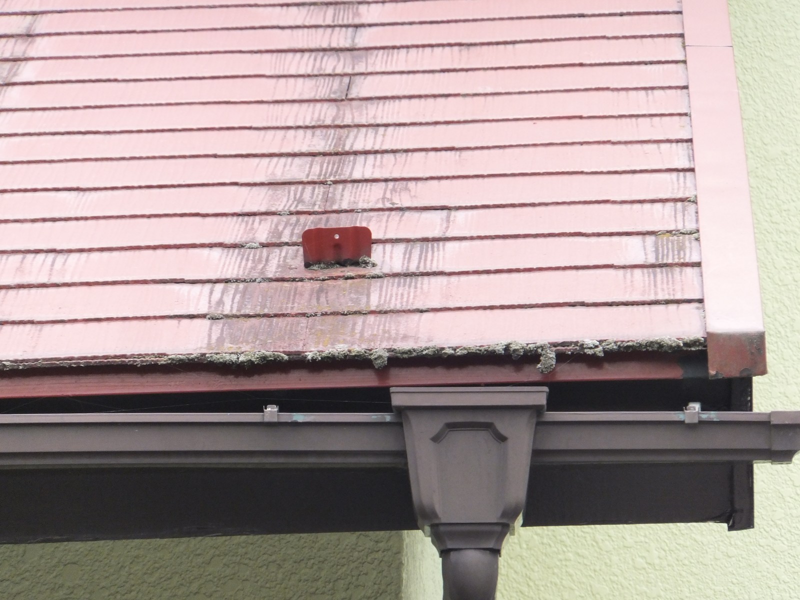 塗装が剥げると、放っておいた場合、ここを起点に塗装の剥離が広がっていくことになります。雨水が直に下地と接触することとなり、屋根材自体を痛める原因となります。早急の補修が必要です。