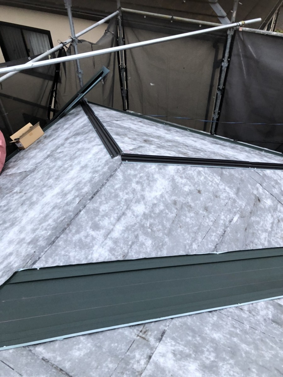 お問合せの際には塗装か葺き替えかで悩んでおられましたが、コロニアルの劣化の状態から塗装は諦め、ガルバリウム鋼板の屋根材で改修工事を行うことになりました。