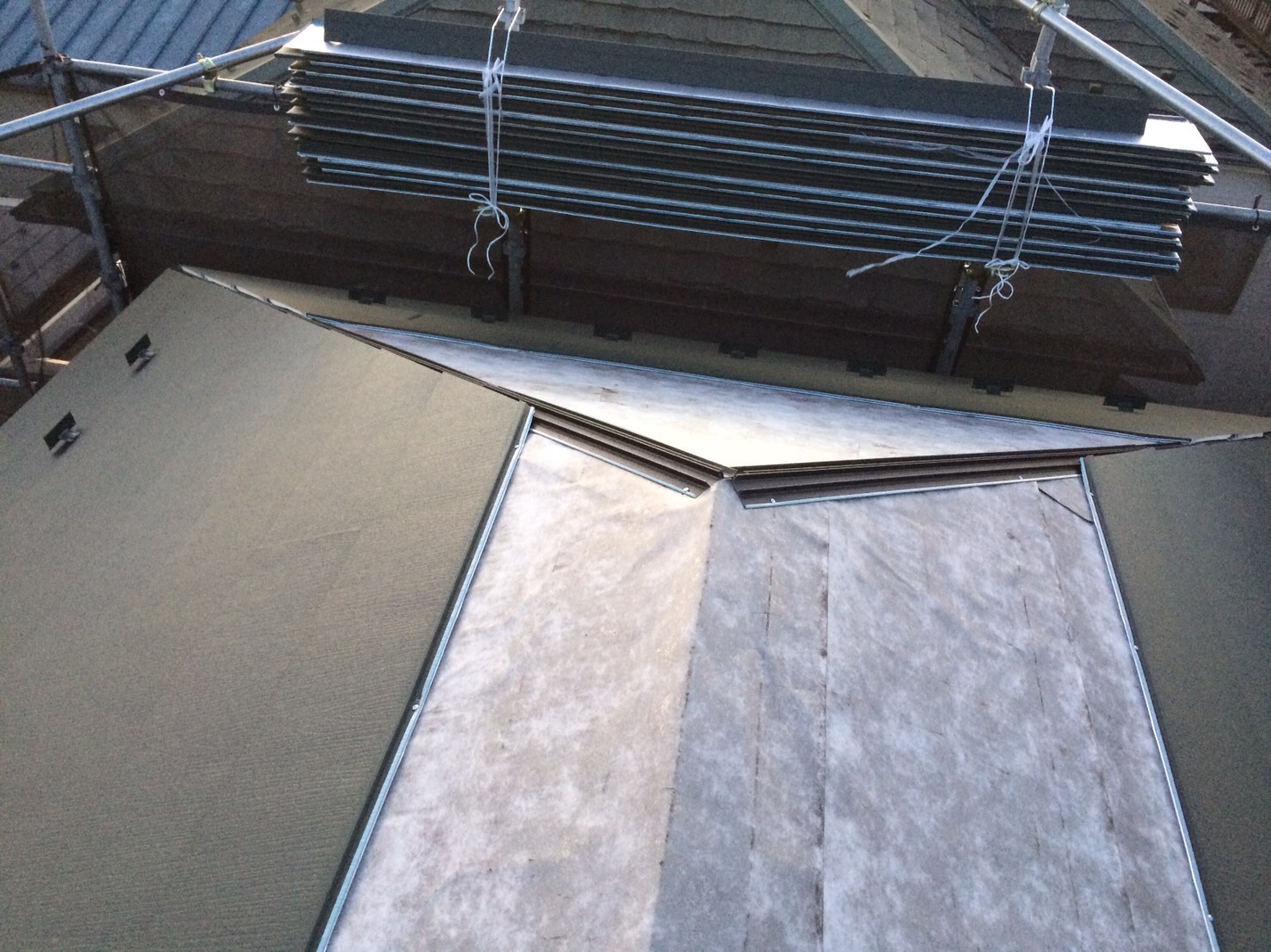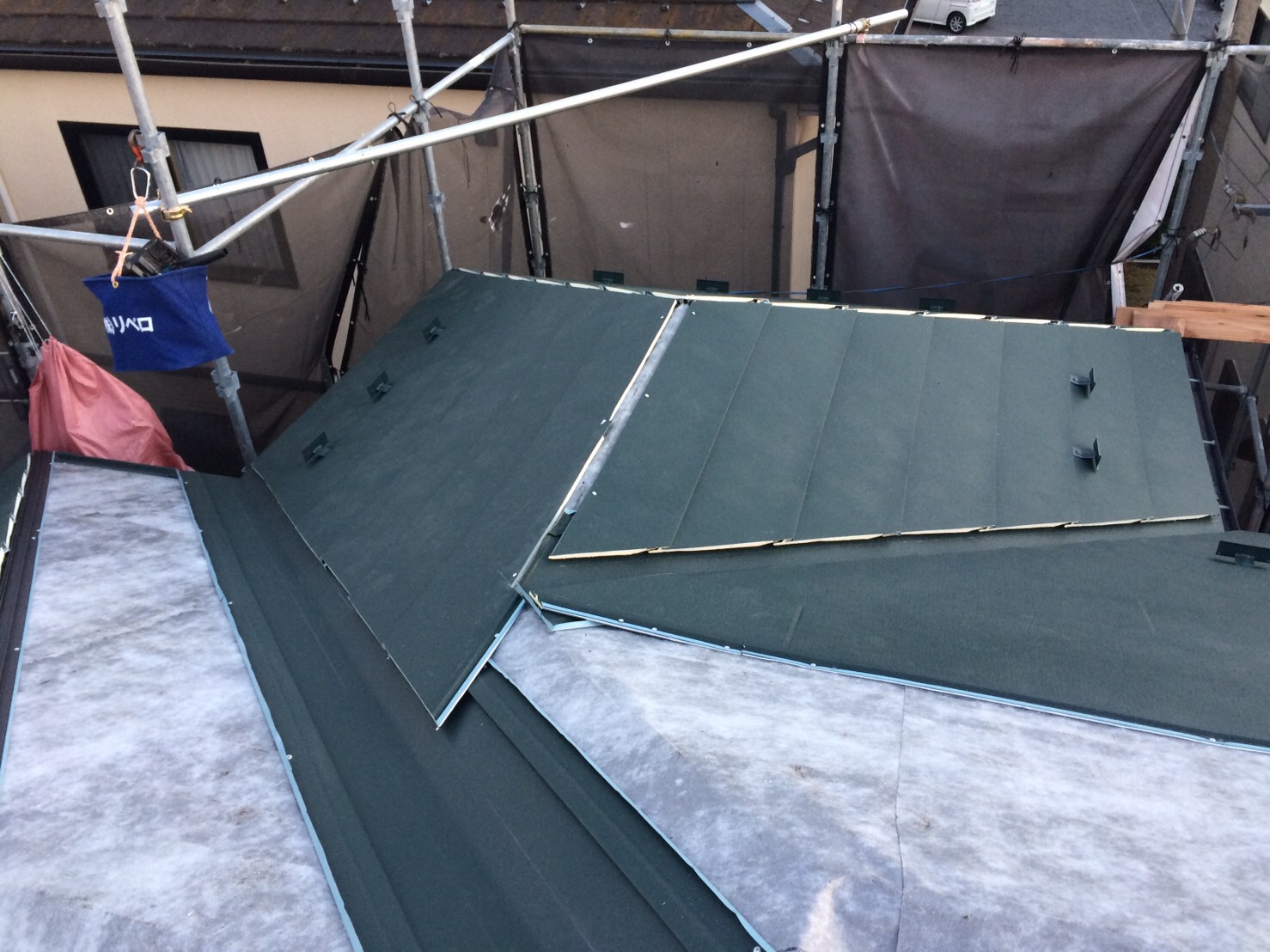 タディスセルフによるルーフィング施工が完了しました。これで防水対策はばっちりです。