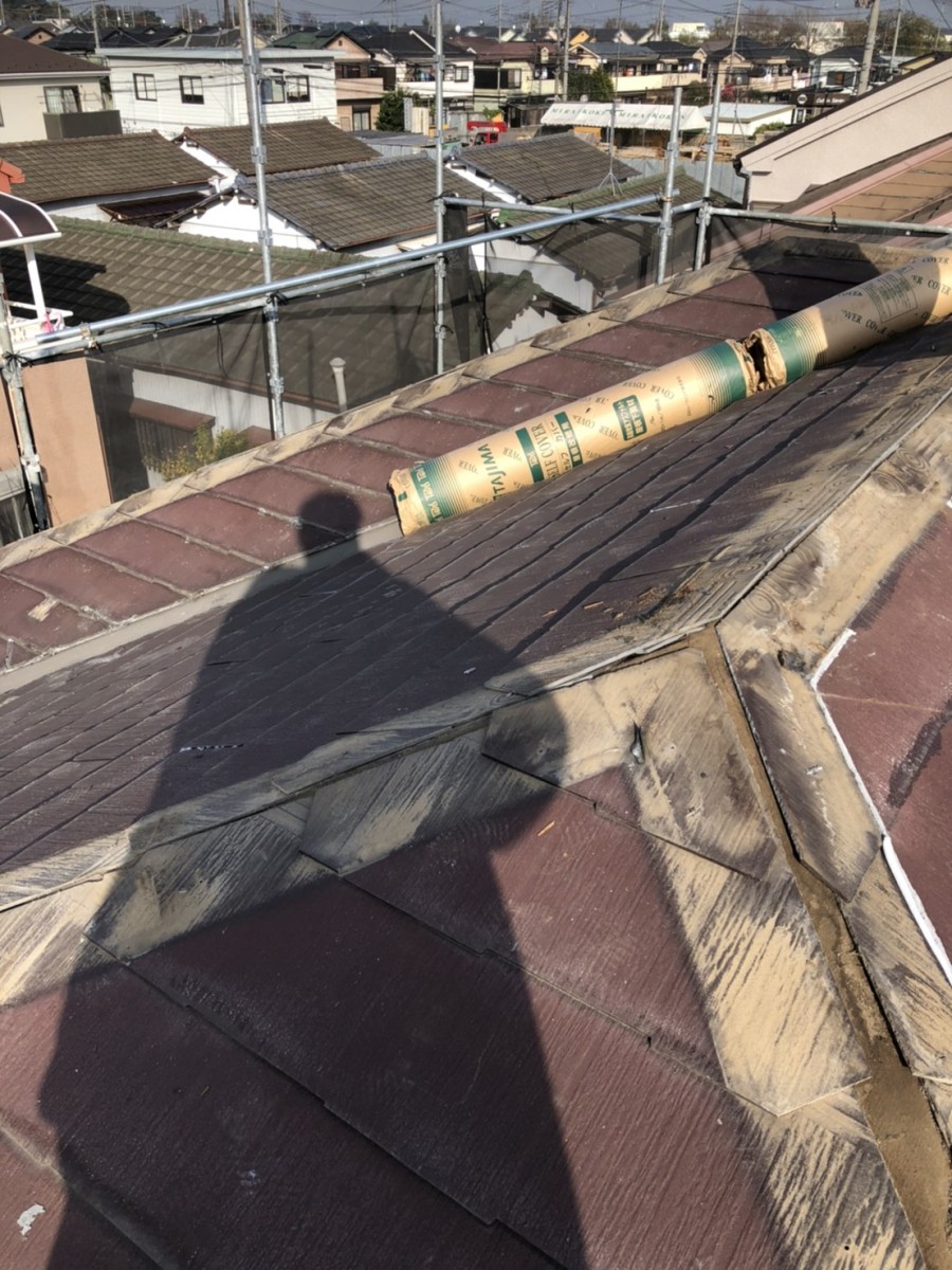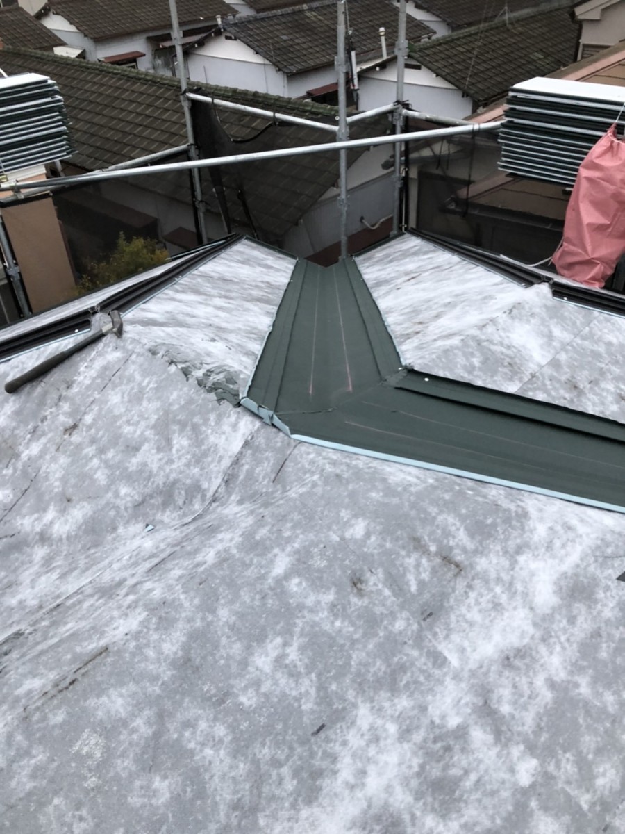 お問合せの際には塗装か葺き替えかで悩んでおられましたが、コロニアルの劣化の状態から塗装は諦め、ガルバリウム鋼板の屋根材で改修工事を行うことになりました。