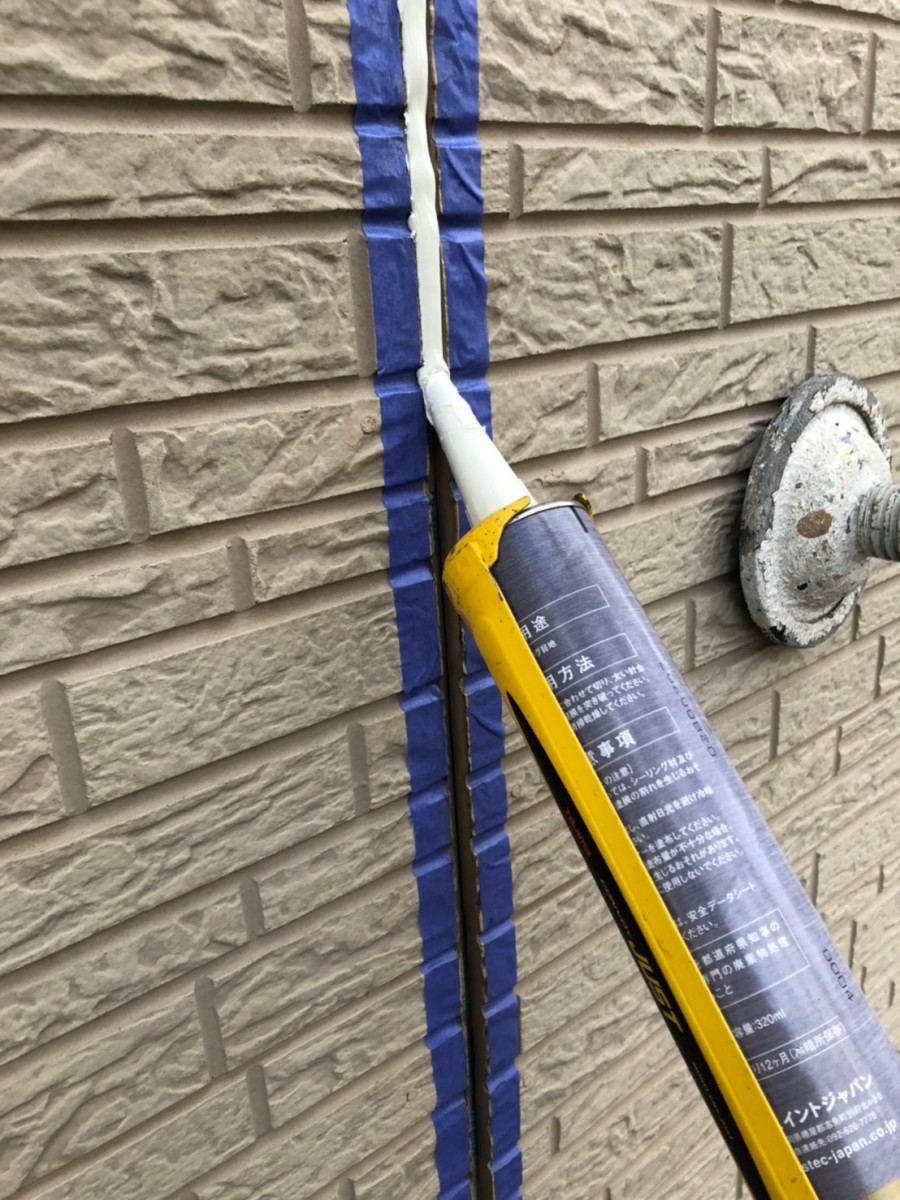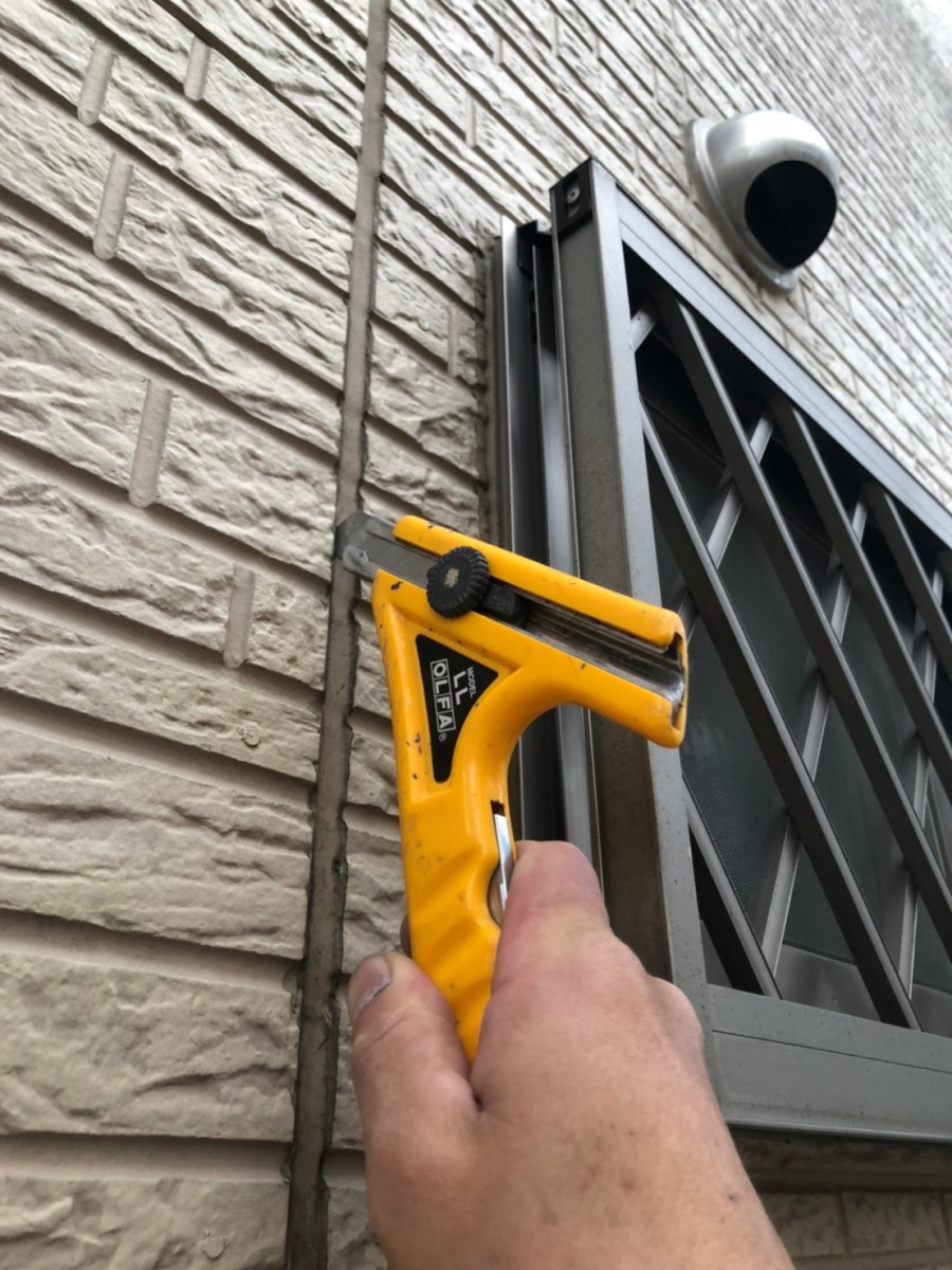高圧バイオ洗浄です。 きれいになりました。 コーキング撤去 コーキング充填。