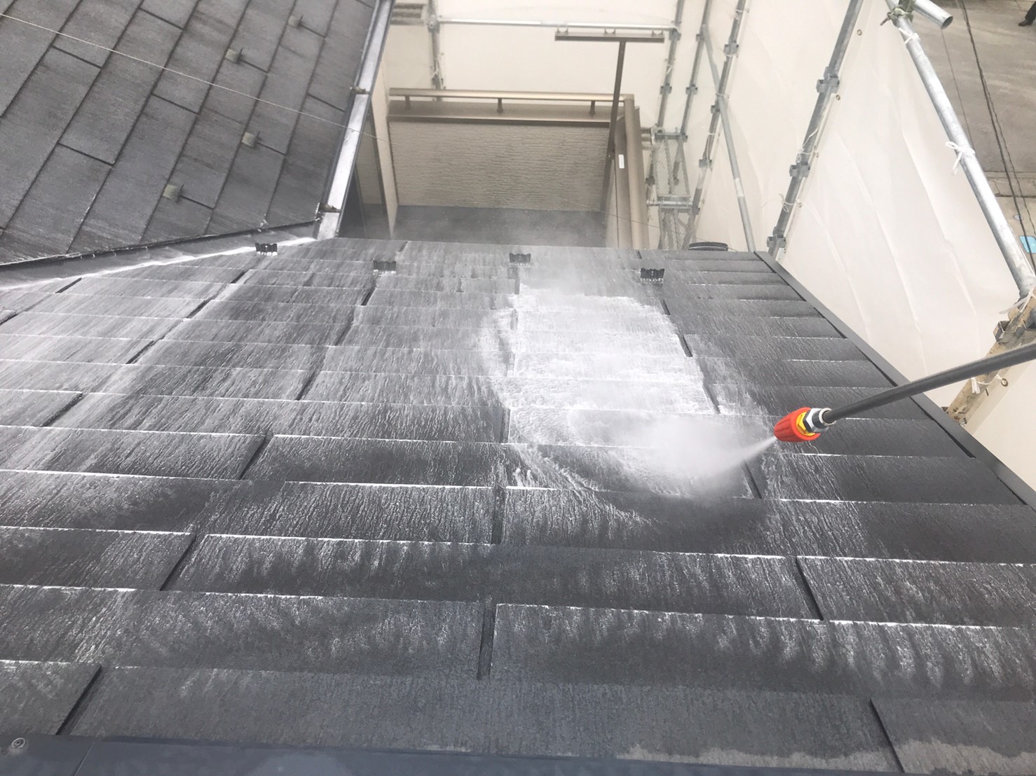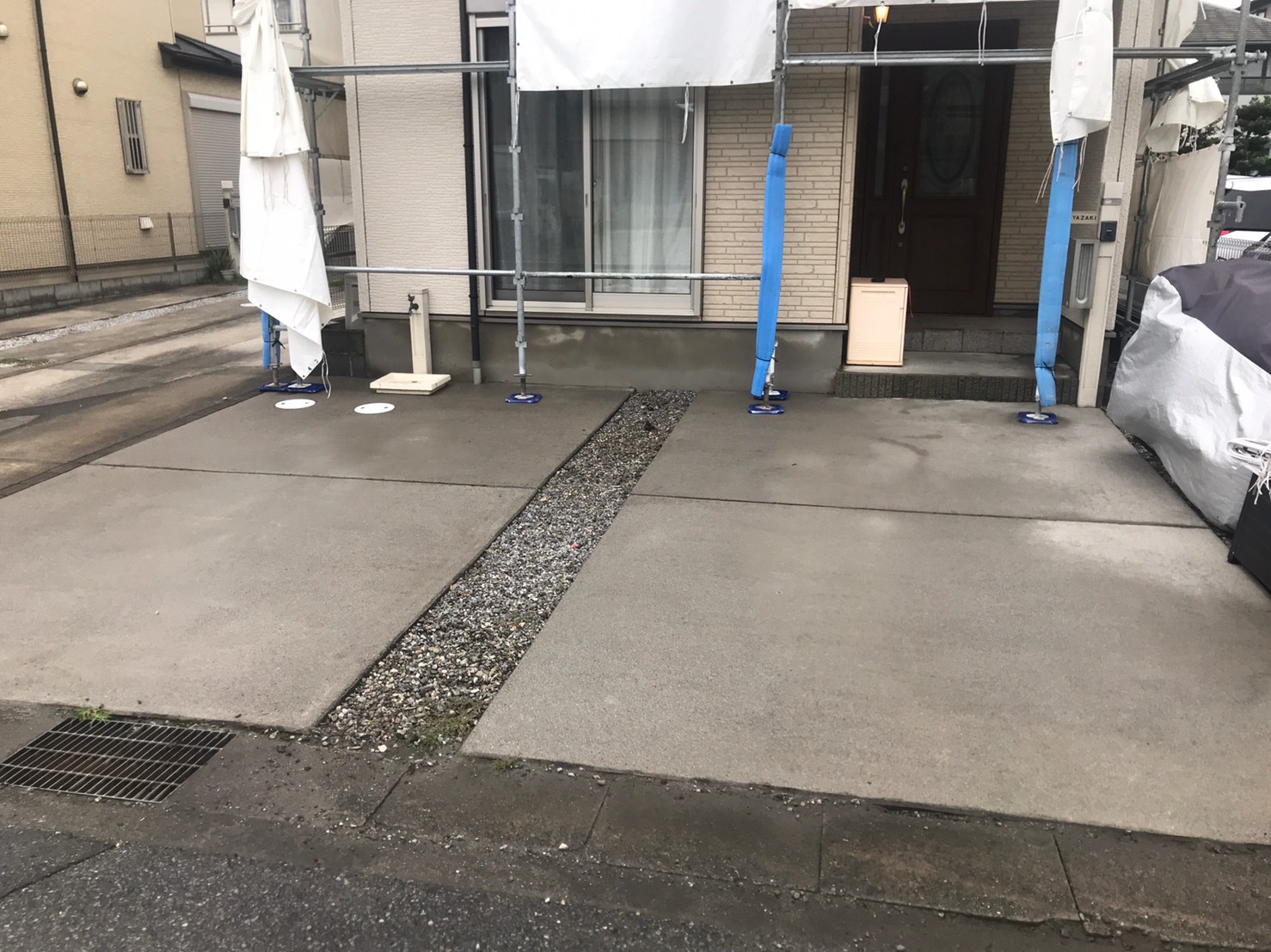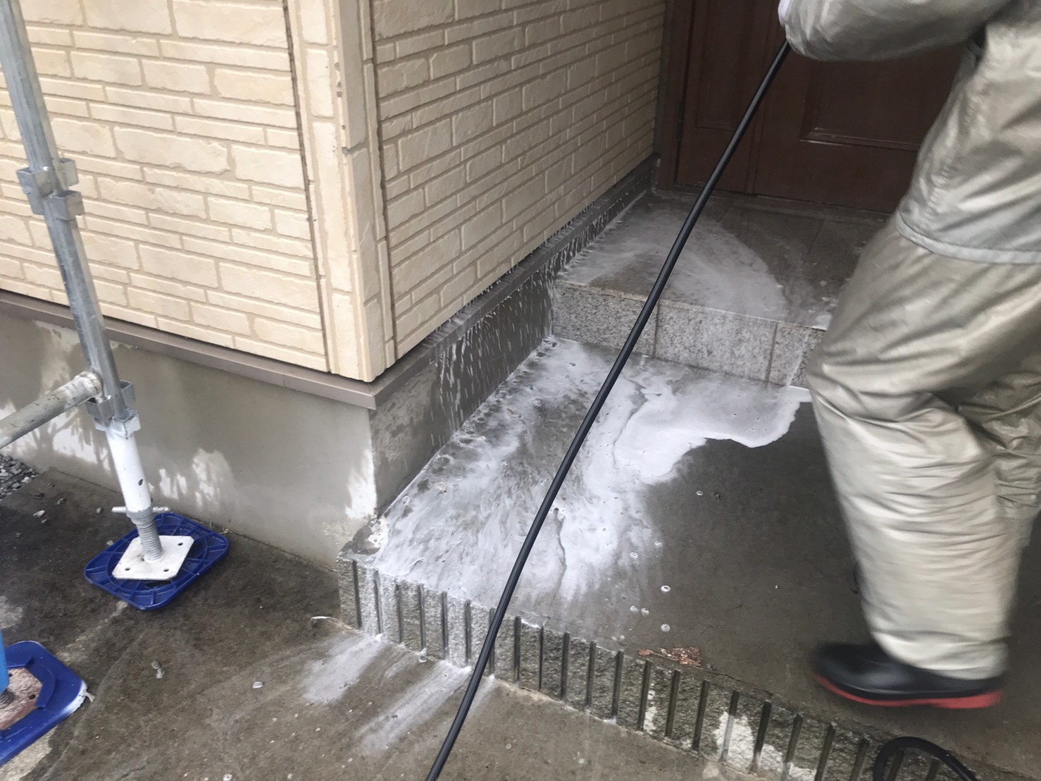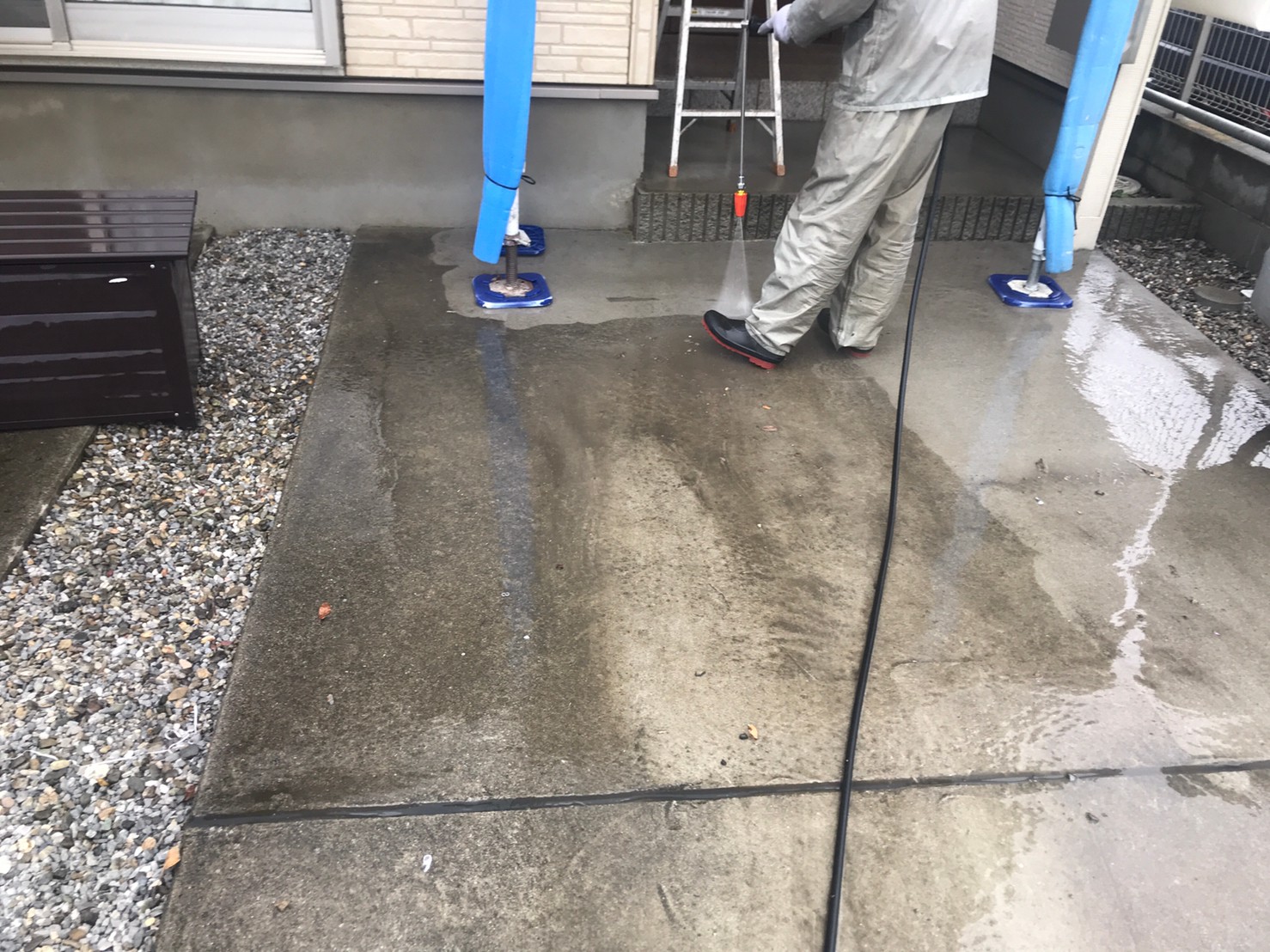本日は、高圧バイオ洗浄 家の周りは駐車場なので防炎シート使用しました。