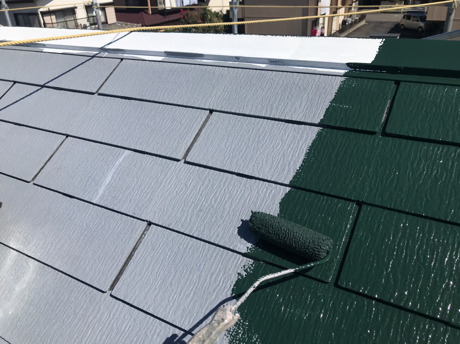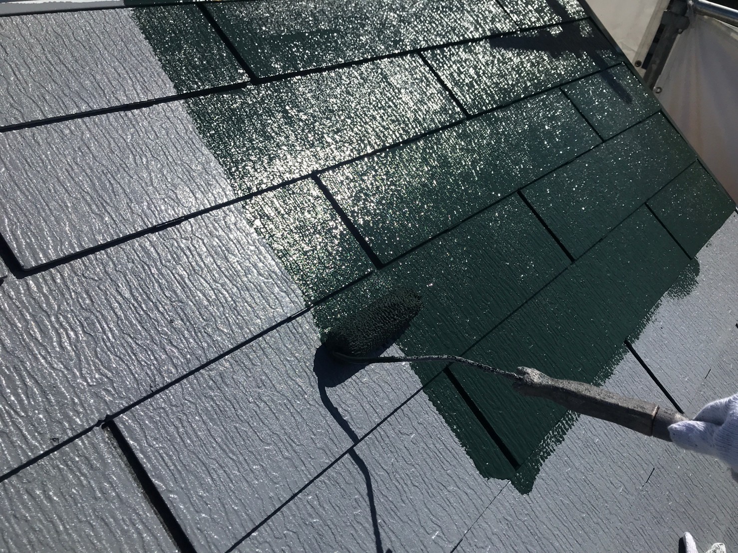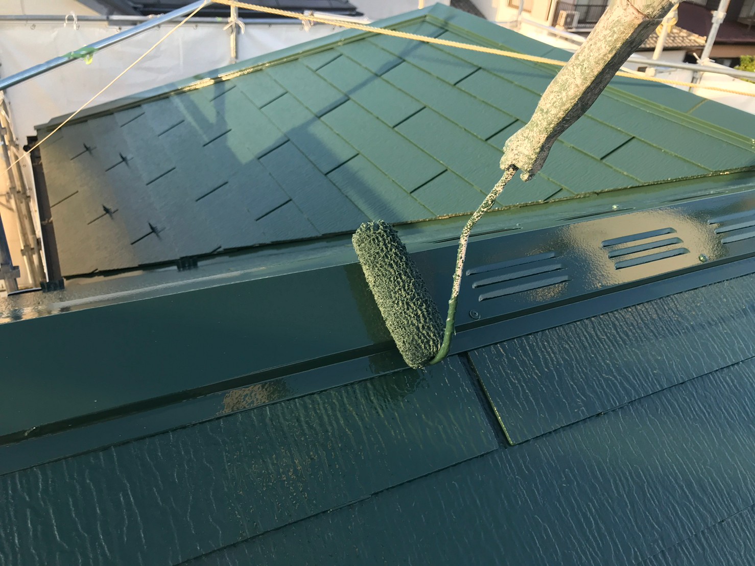 屋根材料は 下塗り・サーモテックシーラー 下塗り・上塗り・スーパー遮熱サーモSI アステックペイント。使用!