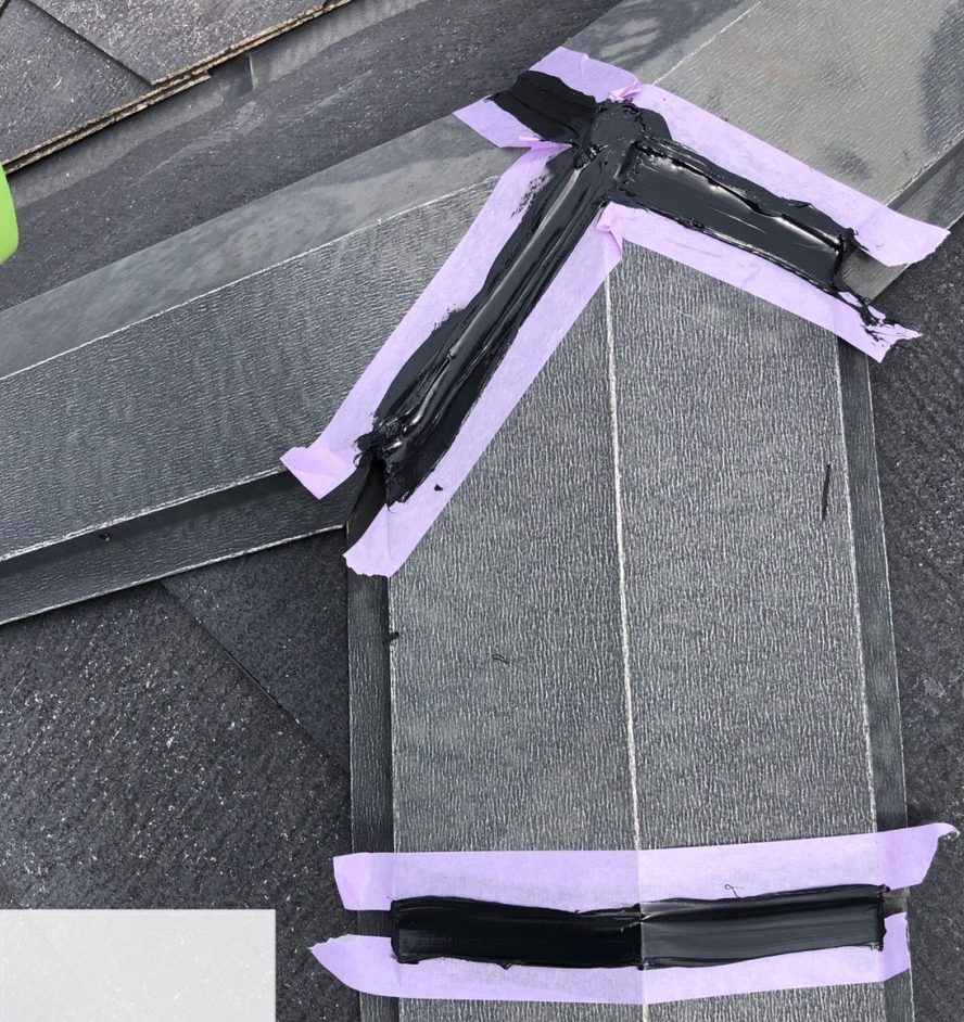 屋根タスペーサー取り付け 棟板金つなぎ目コーキング