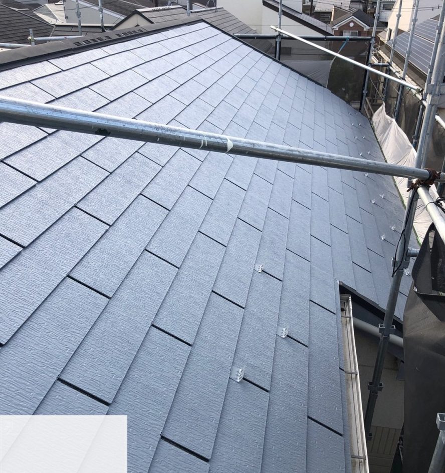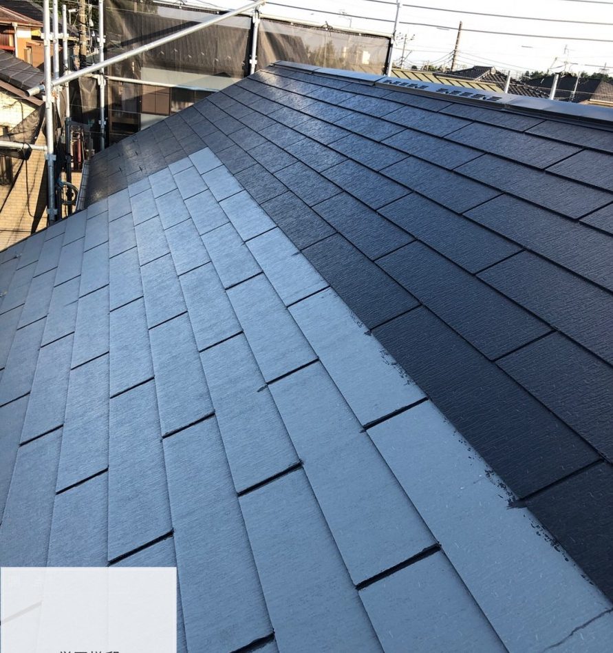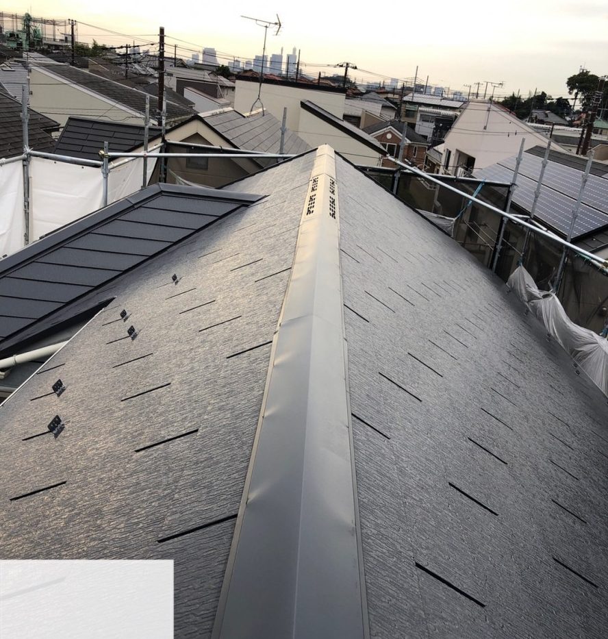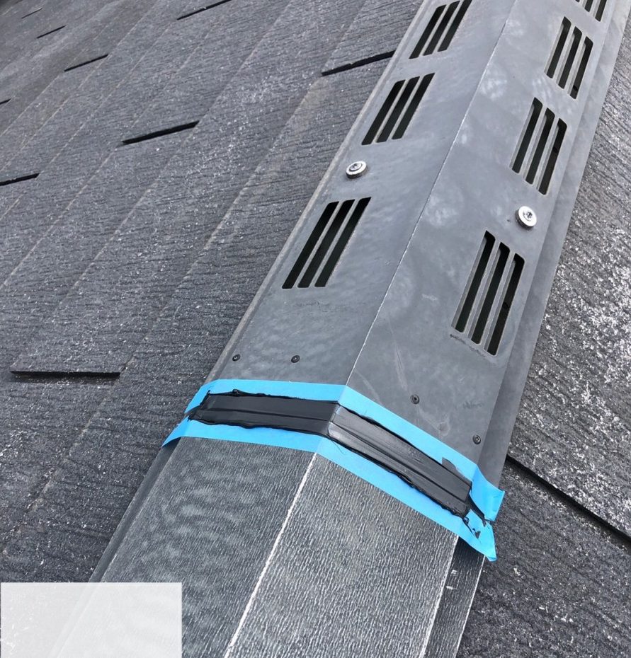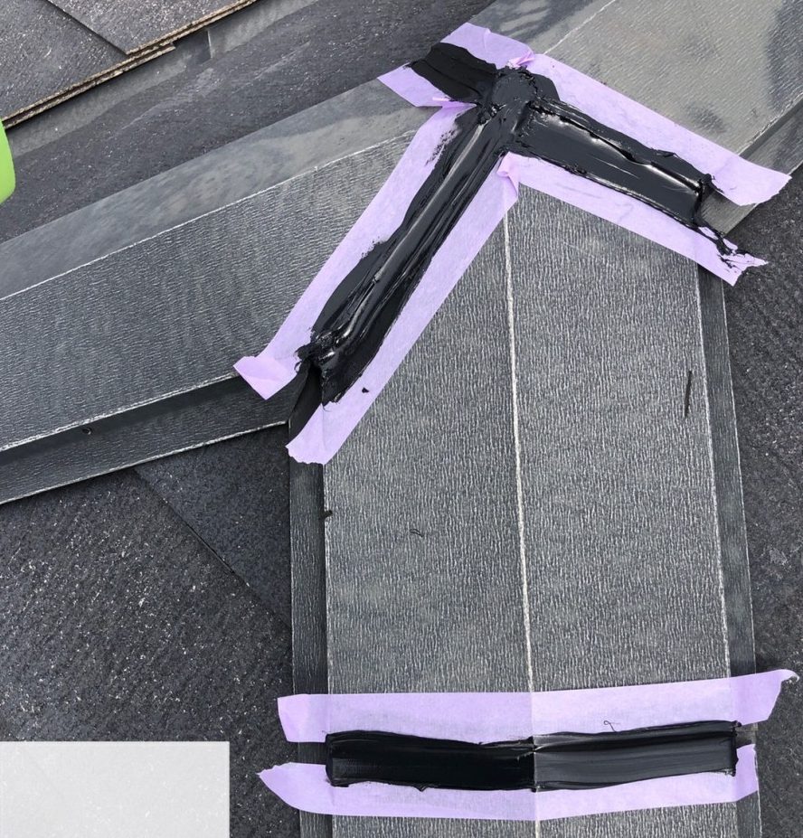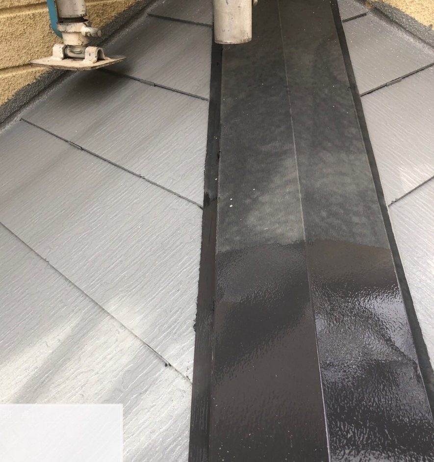 屋根 タスペーサー取り付け工事 つなぎ目コーキング 下塗り・中塗り上塗りです。