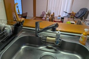 さてキッチンの水詮は取り外して、掃除のしづらい所を奇麗にして取り付けます。作業時間は30分前後です。