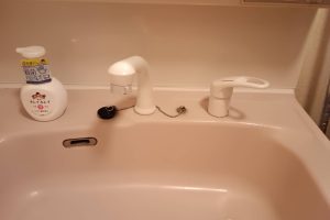 ※洗面所の水詮・・・現在は大型のものが付いていて、小型で節湯Cの規定の物との事でSANSEIの混合レバーシャワー水栓を提案しました。