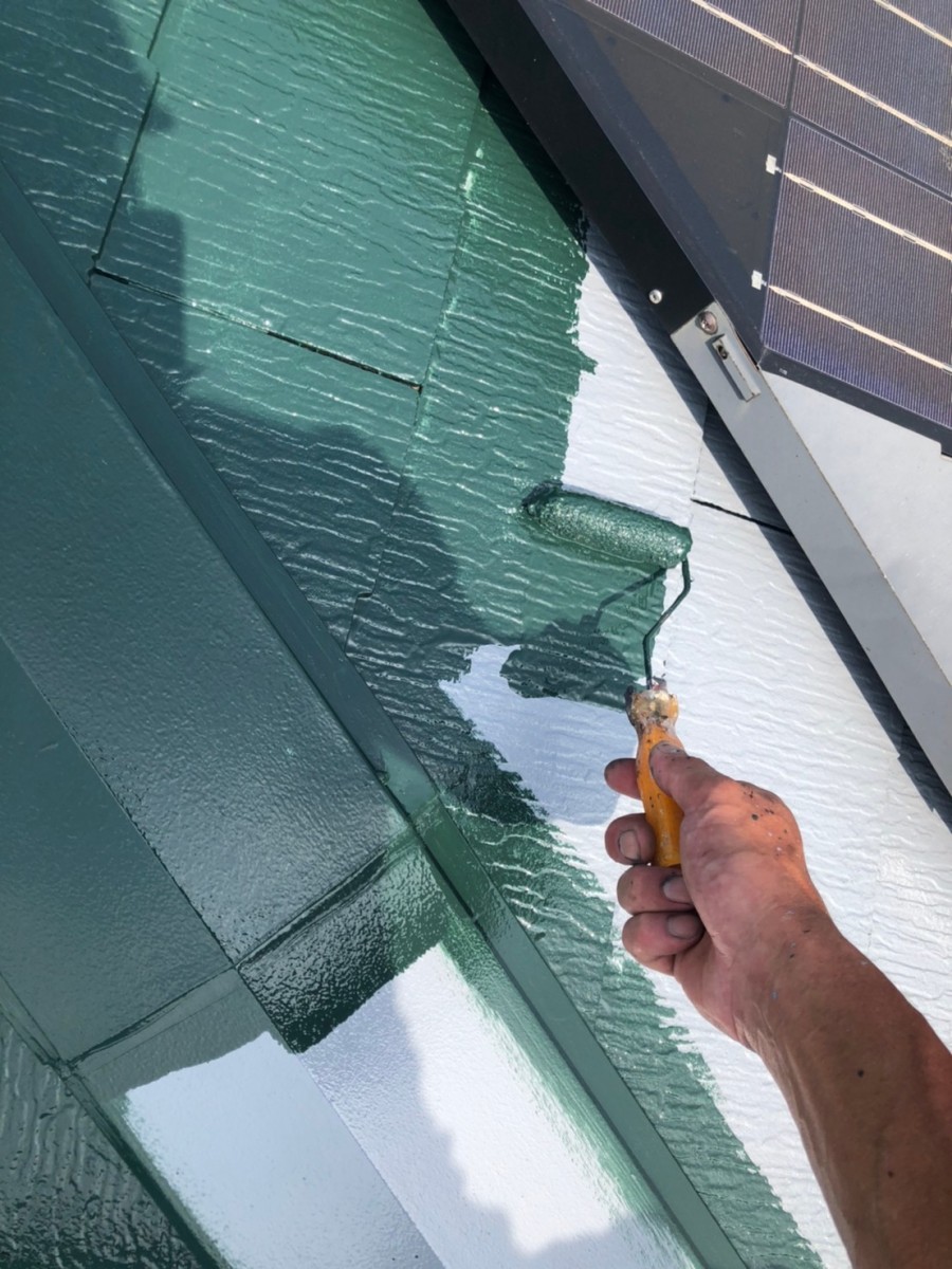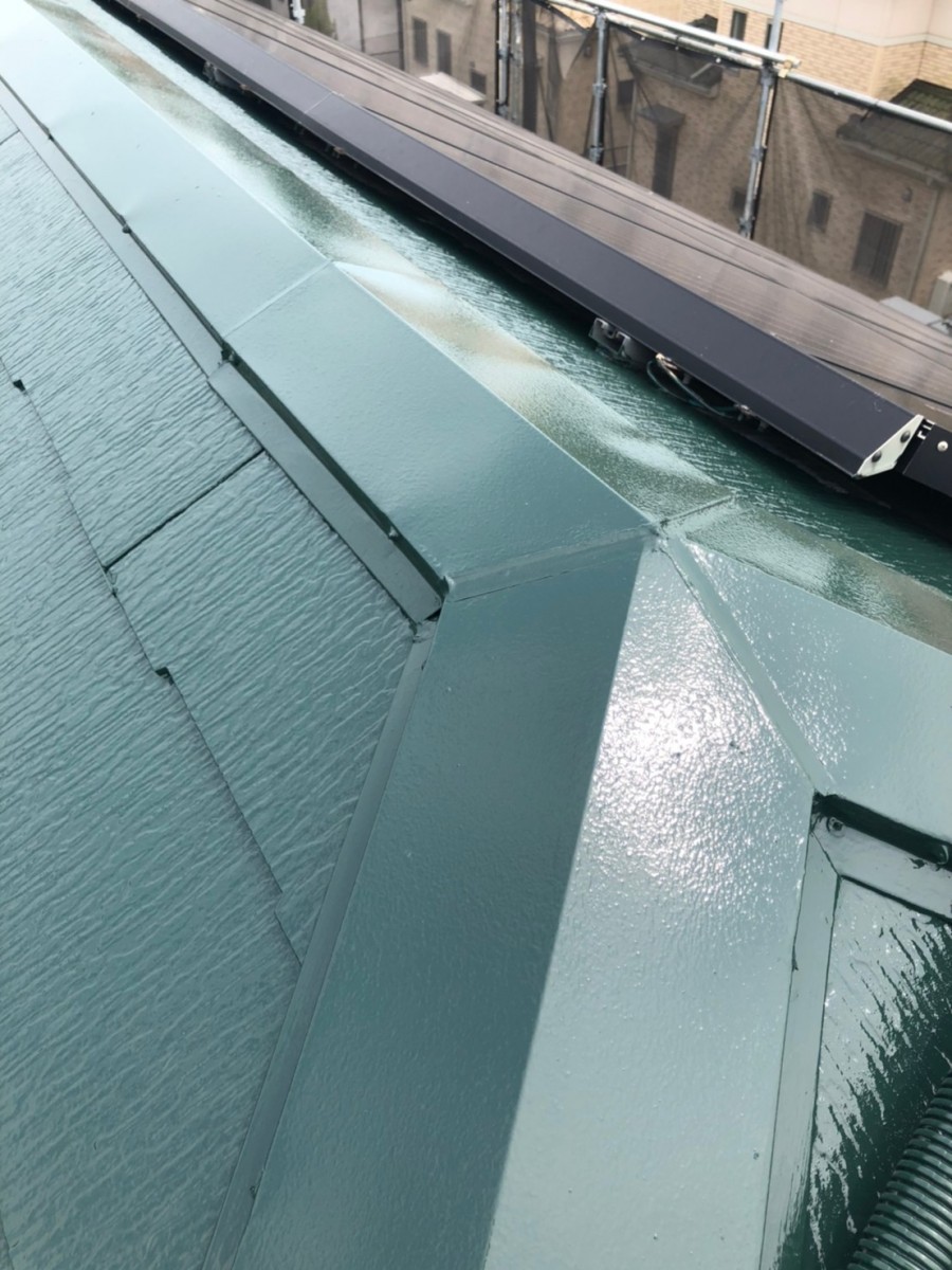 おしゃれできれいなグリーン系の屋根に仕上がりました。