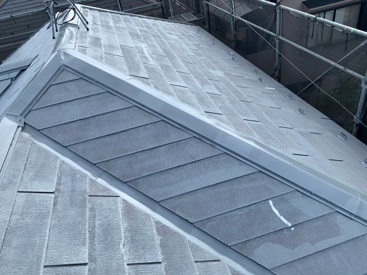 次にヒビ・割れ箇所、板金つなぎ目、浮き釘を丁寧に補修し塗装準備になります。